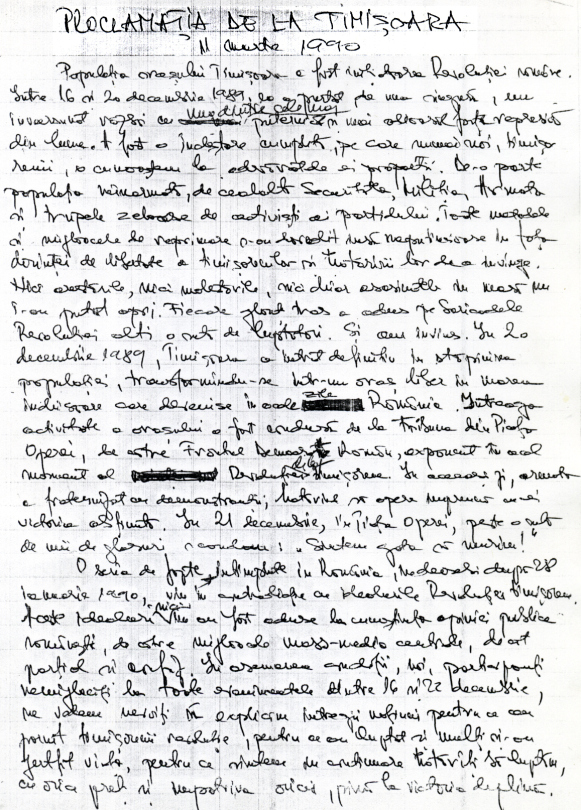 Scriam la început că istoria contrafactuală, uneori, denumită istorie virtuală nu este „punctul meu forte” astfel: „…Aceasta Proclamație s-a născut din necesitatea de aduce la cunoștința națiunii române adevăratele idealuri ale Revoluției de la Timișoara. A fost o revoluție făcută de popor și numai de el, fără amestecul activiștilor și securiștilor. A fost o revoluție autentică și nu o lovitură de stat. A fost categoric anticomunistă și nu doar anticeaușistă. La Timișoara nu s-a murit pentru ca activiști comuniști din rândurile doi și trei să treacă în frunte și unul din participanții la genocid să fie numit de către aceștia ministru de interne. Nu s-a murit pentru ca dezbinarea socială și națională, cultul personalității, cenzura mass-mediei, dezinformarea, amenințările telefonice și scrise și toate celelalte metode comuniste de constrângere să fie practicate în văzul lumii, în timp ce nouă ni se cere pasivitate în numele stabilității sociale. Aceasta Proclamație se adresează în primul rând celor care au primit revoluția cadou și se miră de ce suntem nemulțumiți, de vreme ce dictatura a căzut, s-au abrogat o serie de legi proaste și a mai apărut și câte ceva în prăvălii. Acum știu de ce suntem nemulțumiți: nu acesta a fost idealul Revoluției de la Timișoara. Noi, autorii acestei Proclamații, participanți la evenimentele dintre16 și 22 decembrie 1989, nu consideram Revoluția încheiată. O vom continua pașnic, dar ferm…”, din punctul 13 al proclamației datat Timișoara 11 martie 1990.