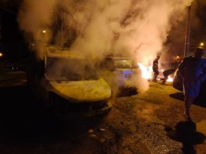 La faţa locului au fost direcţionate două autospeciale de stingere cu apă şi spumă. În momentul în care au ajuns la faţa locului,  pompierii au constatat că incendiul se manifesta violent la două autoturisme parcate în locuri diferite. Incendiul a  fost localizat şi lichidat în limitele găsite, fiind afectate în proporţie de 90, respectiv 100 la sută. Cele două autoturisme, Mini Cooper şi Hyundai, au acelaşi proprietar.