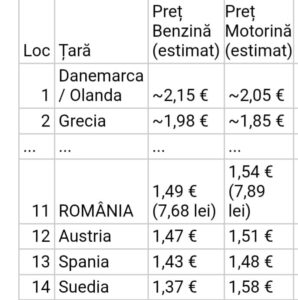 În prezent, țara noastră ocupă poziția 11 în topul celor mai scumpe piețe din UE, cu benzina la circa 1,49 euro/litru șți motorina la 1,54 euro pe litru, potrivit datelor din ultimul Weekly Oil Bulletin al Comisiei Europene.