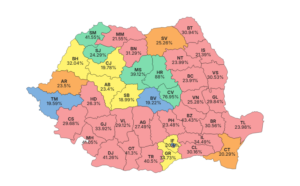 Caraș-Severin:  PSD scade de la 32,72% la 29,68% – o scădere de 1,1 ori. AUR crește de la 6,79% la 20,39%, adică o creștere de 3 ori.