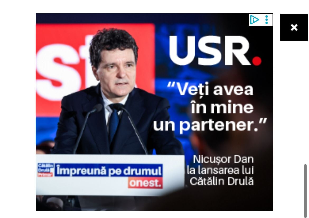 Cătălin Drula își face reclamă în online cu Nicușor Dan. El, candidatul, nici nu apare în poză. Figura președintelui și sigla USR sunt armele sale de campanie.