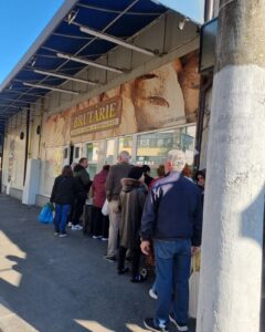 Stau la coadă să cumpere pâine pentru Sâmbăta morților