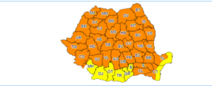 Administrația Națională de Meteorologie a emis un cod portocaliu de instabilitate atmosferică accentuată pentru cea mai mare parte a țării, restul fiind sub cod galben.