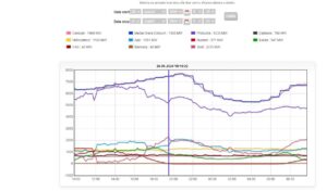 Ca să acopere consumul, Hidroelectrica și-a crescut cât a putut consumul(în condițiile în care debitele Dunării sunt extrem de mici iar unele râuri aproape au secat) – puțin peste 2.000 de MW, termocentralele pe gaz au produs și ele la maximul posibil din prezent – 1.300 MW. Dar nu a fost destul. Consumul mare de caniculă a făcut necesare importuri masive de electricitate care, la orele de maxim consum, pe seară, au trecut de 2.200 MW, adică aproape 30% din tot consumul. În fapt, importul, așa cum se poate vedea în diagrama atașată, a reprezentat prima sursă de energie a țării. Din datele OPCOM, operatorul bursei de energie, cele mai mari importuri s-au făcut din Bulgaria – 1.500 MW, restul(circa 700 MW) din Ungaria.De asemenea, și prețul spot al curentului a crescut până la peste 500 euro/MWh pe seară, pentru că, evident, traderii au speculat situația din piață.