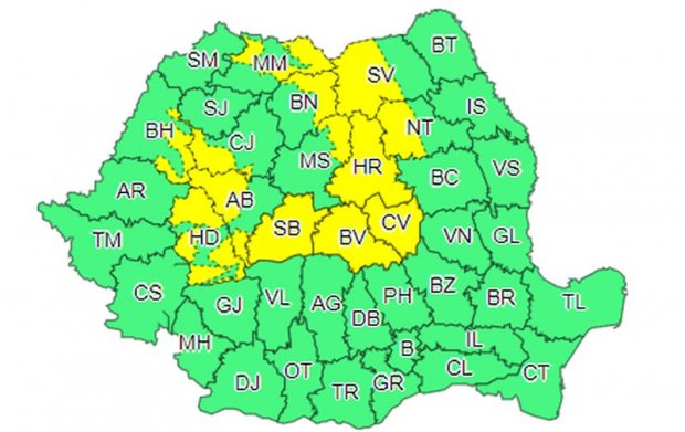 „În intervalul menționat, local vor fi perioade cu instabilitate atmosferică accentuată ce se va manifesta prin frecvente descărcări electrice, averse torențiale, grindină și intensificări ale vântului, la munte și în sudul și estul Transilvaniei. În intervale scurte de timp (1 – 3 ore) cantitățile de apă vor fi de 20…25 l/mp și izolat de peste 30 l/mp”, au precizat meteorologii.