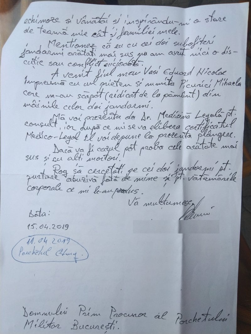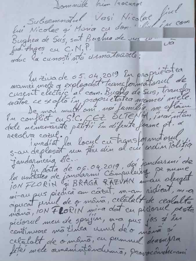 Astfel, conform unei plângeri formulată la Parchetul Militar București, în data de 11.04.2019, un cetățean din județul Argeș, a fost călcat în picioare de jandarmi pentru că a îndrăznit să protesteze după ce pe proprietatea mamei sale a explodat, apoi a luat foc, un transformator al SC CEZ Oltenia.