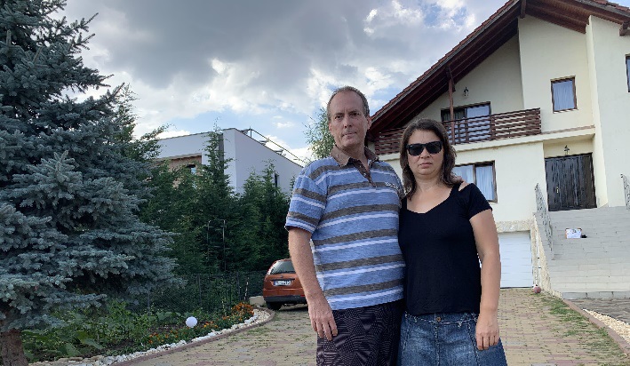 Sotii LaGue în fața casei visurilor lor, spulberate de vila Calugărilor din stânga