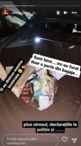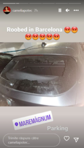 “Jefuită la Barcelona”, “Au distrus maşina închiriată. Sunt bine… mi-au furat doar o parte din bagaje.. Plus stresul, declaraţiile la poliţie şi…”, a scris Potec.
