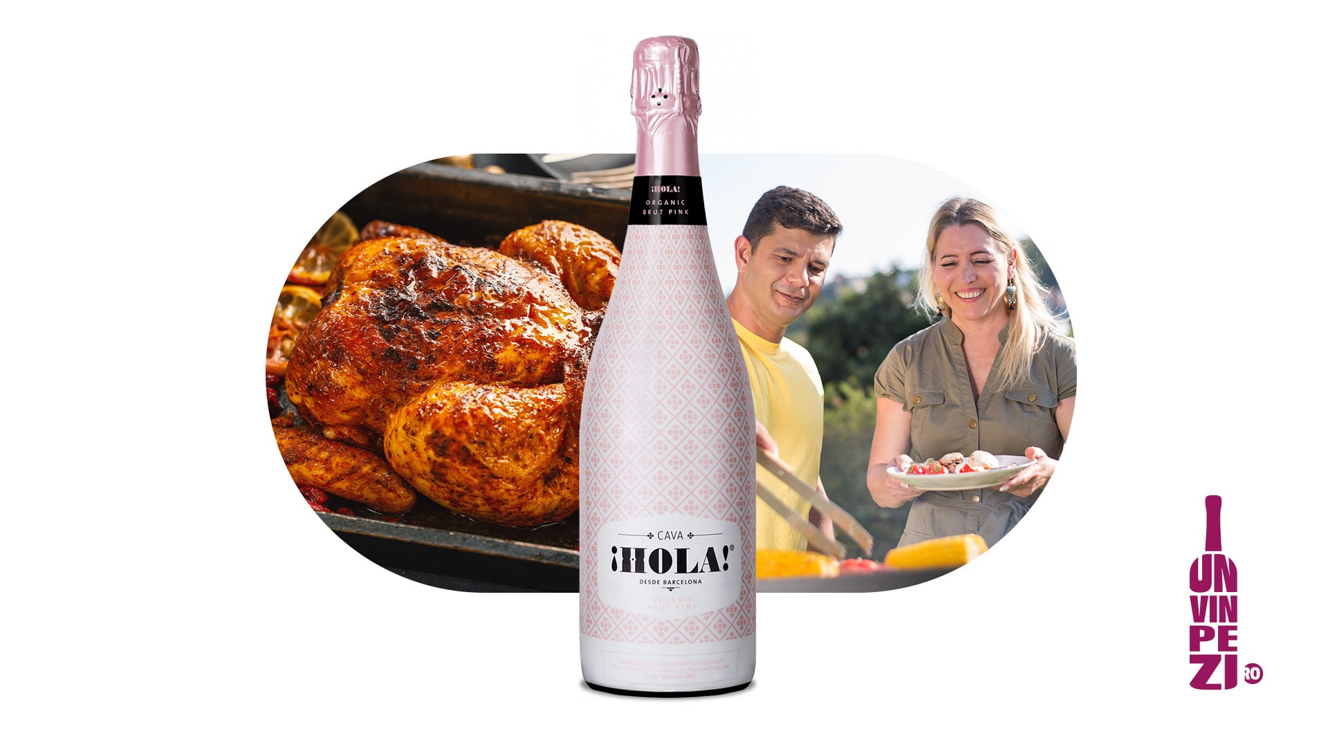 Pentru preparatele la grătar din carne de pui poți alege Casa Rotărescu Val Vârtej Roze 2025 de la Casa Rotărescu sau Hola Cava Organic Brut Pink de la Barcelona Brands.