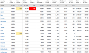 Datele pe care le prezinti sint corecte (numarul de morti la milionul de locuitori), mai putin prezicerea finala. Pentru ca situatia se explica, cred eu, prin densitatea populatiei (sa zicem mia de locuitori pe km²) : Statele Unite, in afara marilor aglomerari urbane (si se pare ca acolo e dezastrul cel mai mare) are si zone sau chiar state cu densitate foarte mica. Pe cind Belgia (ca sa vorbim doar de Europa, cazul unor state asiatice, mai ales succesul exceptional al Hong kong-ului, fiind bazate pe alt tip de masuri antiepidemice) are o densitate mare de locuitori pe km².