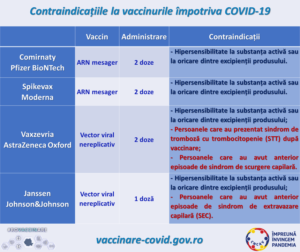 ”Hipersensibilitate la substanţa activă sau la oricare dintre excipienţii produsului este contraindicaţia valabilă pentru toate cele 4 vaccinuri autorizate în Uniunea Europeană”, a transmis