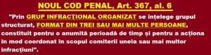 Sînt înşirate apoi o serie de infracţiuni care ar putea intra în competenţa DIICOT, inclusiv cea de omor sau omor calificat (art. 188 şi 189 CP) sau de lipsire de libertate în mod ilegal (art. 205 CP), cu condiţia prevăzută mai sus: „DACĂ SĂVÂRŞIREA LOR A INTRAT ÎN SCOPUL UNUI GRUP INFRACŢIONAL ORGANIZAT”, aşa cum este definit acesta de art. 367, al. 6 CP, care spune explicit: