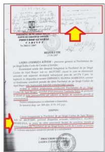 Citind cu atenţie acest document din „Dosarul Elodia”, observăm că în 17.09.2007 Procurorul general Codruţa Kovesi a constatat că „finalizarea urmăririi penale de către Parchetul de pe lîngă Curtea de Apel Braşov este îngreunată datorită (sic!, n.r.) complexităţii cauzei” şi, la propunerea procurorilor din Braşov, cu acordul procurorului de caz, Vasilache Sorin, precum şi a notei procurorului şef adjunct, a decis: că dosarul „se preia de către procurorii Scţiei de urmărire penală şi criminalistică din Parchetul de pe lîngă Înalta Curte de Casaţie şi Justiţie”!