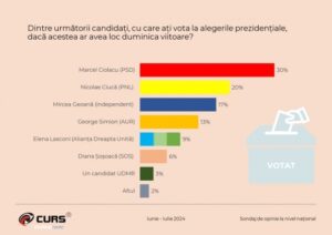 CURS, institutul de sondare considerat de unii ca fiind apropiat de PSD, a făcut un sondaj conform căruia liderul PSD Marcel Ciolacu se situează pe primul loc în intenţiile de vot pentru alegerile prezidenţiale.