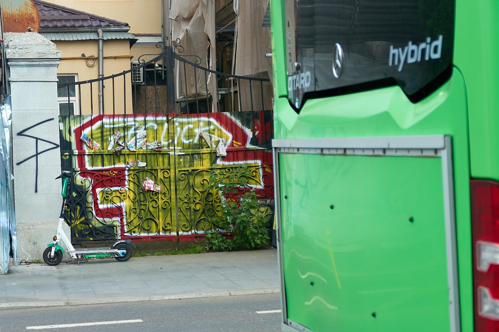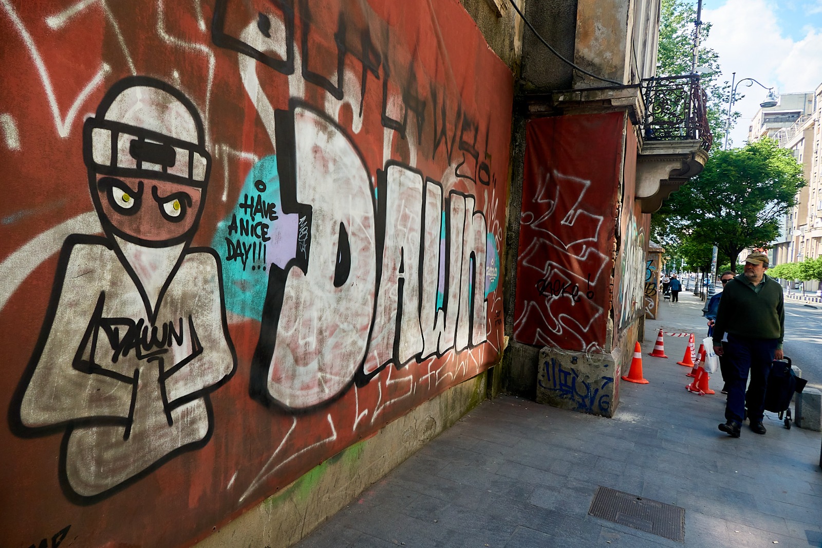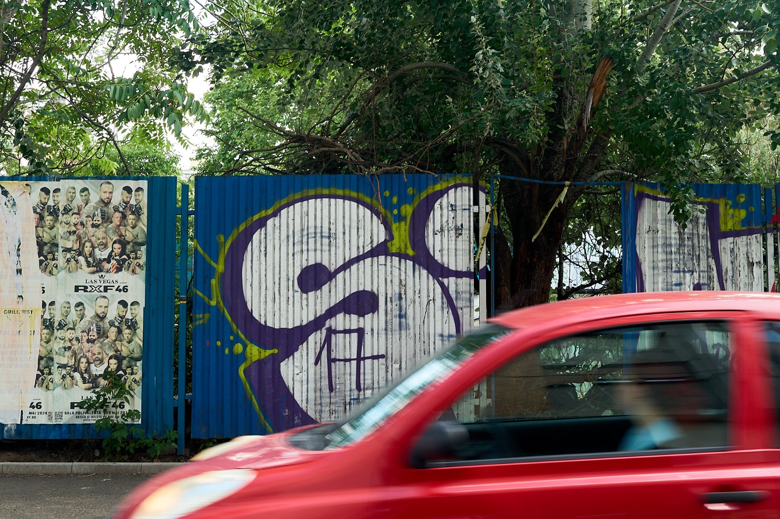 Desene și semne nelizibile împodobesc un gard metalic instalat provizoriu pentru protejarea lucrărilor de renovare a clădirii Cercului Militar Național de pe Calea Victoriei. Un amalgam colorat de reclame, rupturi și mâzgăleli se afișează aproape de Teatrul de Revistă Constantin Tănase. Curtea unei fabrici abandonate și vandalizate are gard comun cu mall-ul Veranda de lângă Piața Obor.