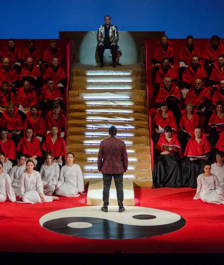 Duminică, 10 martie, la ora 18:30, este programată opera semi-stage Turandot de Giacomo Puccini. Regia poartă semnătura lui Ștefan Neagrău, scenografia a fost realizată de Viorica Petrovici, iar conceptul video de către Andreea Bițulescu. La pupitrul dirijoral se va afla maestrul Tiberiu Soare.