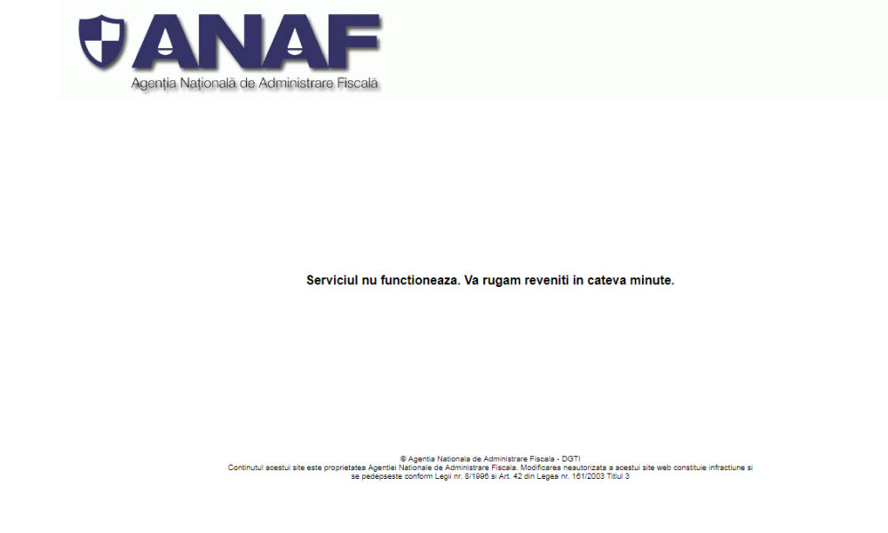 Site-ul Agenției Naționale de Administrare Fiscală (ANAF) a picat în cursul zilei de luni, 22 ianuarie, dând peste cap intențiile celor care și-au pus speranța să evite cozile de la ghișee pentru a depune formularul 600 prin intermediul Spaţiului Privat Virtual. Până pe 31 ianuarie, Fiscul se așteaptă ca în jur de 210.000 de contribuabili persoane fizice să completeze și să depună respectivul document ce reprezintă „Declarația privind venitul asupra căruia se datorează contribuția de asigurări sociale și cu privire la încadrarea veniturilor realizate în plafonul minim pentru stabilirea contribuției de asigurări sociale de sănătate”. Ca să evite înghesuiala de la sediile ANAF, reprezentanții Fiscului au făcut posibil ca începând din data de 15 ianuarie 2018, formularul 600 să poată fi transmis și în format electronic „La nivelul ANAF (Agenția Națională de Administrare Fiscală – n. red.) au fost dispuse toate măsurile organizatorice necesare în vederea asigurării realizării procesului de depunere și prelucrare facilă și rapidă a formularului 600. În acest sens, contribuabilii au la dispoziție și posibilitatea transmiterii acestui formular fără a se deplasa la sediile ANAF, prin poștă, cu confirmare de primire, urmând ca, începând din data de 15 ianuarie 2018, formularul 600 să poată fi transmis și în format electronic, de pe portalul www.anaf.ro”, a informat Agenția Națională de Administrare Fiscală.