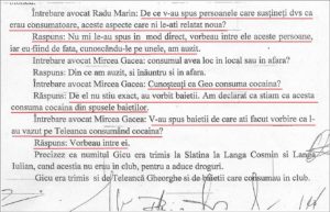Semnificativ este momentul în care avocatul întreabă: „Cunoşteaţi că Geo [Teleancă, patronul clubului Havva, n.n.] consuma cocaină?”, iar, cu o naivitate pe care judecătorul n-a observat-o, „domnişoara martor” spune: „De el nu ştiu exact, au vorbit băieţii”, adică ăia care vorbeau între ei, pe care nu-i cunoştea!