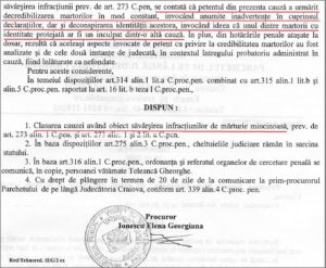 Culmea este că, pe baza acestui Referat al Poliţiei, şi procurorul de la Parchetul de pe lîngă judecătoria Craiova trage exact aceeaşi concluzie, tot fără să facă o cercetare reală: