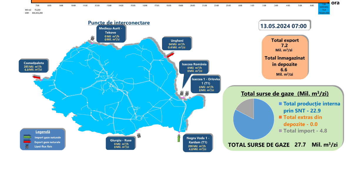 Așa cum se vede din datele interactive Transgaz, importul din Bulgaria este de 4,8 milioane de metri cubi, în timp ce exportul către Ungaria și Republica Moldova este de 6,8, respectiv 0,4 milioane de metri cubi, de unde rezultă un export net(dincolo de tranzit) de 2,4 milioane de metri cubi. Pot exporta Petrom sau traderi cu anumite cantități anterior cumpărate.