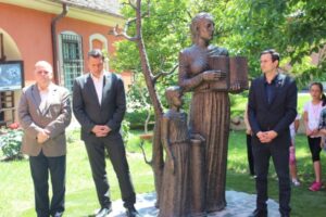 Evenimentul a fost organizat cu ocazia sărbătoririi Zilei Limbii Române. Manifestarea a început cu intonarea imnului naţional al României de către artistul Petrică Mureşan, după care monumentul a fost sfinţit de către un sobor de preoţi şi dezvelit de reprezentanţii autorităţilor locale – prefectul Ioan Tibil, preşedintele Consiliului Judeţean, Pataki Csaba şi primarul Kereskenyi Gabor.