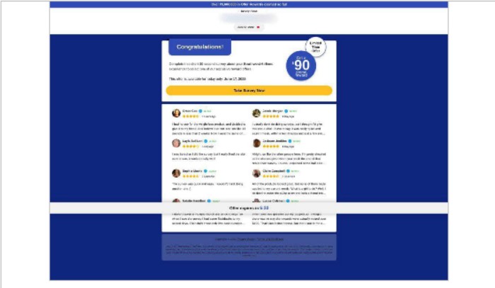 În plus, sondajul se încheie de obicei cu o solicitare de a distribui adresa site-ului între prieteni pentru a primi premiul. În astfel de cazuri, infractorii cibernetici folosesc victimele ca pe un instrument pentru a răspândi în continuare escrocheria. Un link primit de la oameni pe care îi cunoști pare mai demn de încredere decât unul primit de la un străin. Dacă utilizatorul urmărește apoi linkul și încearcă să-și obțină premiul, adesea descoperă că trebuie să plătească mai întâi un comision sau o taxă. După ce acești bani sunt plătiți, infractorii cibernetici dispar – fără să răsplătească utilizatorul.