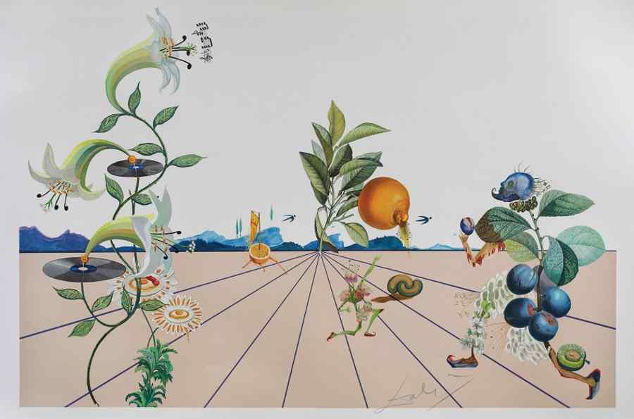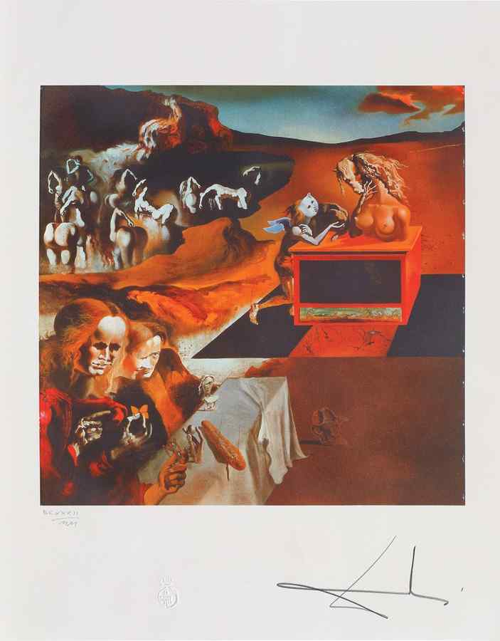 Lucrări suprarealiste ce cuprind toate perioadele artistice ale pictorului: „Rosa Paillonaea”, „Dematerializare în jurului lui Nero” sau „Invențiile monștrilor” sau gravuri semnate de Salvador Dali nu depășesc în licitație prețul de pornire de 1.000 de euro.