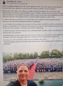 La noi, profesorii merg pe vârfuri, școala nu mai produce nici profesioniști, nici caractere!, continuă jurnalistul.