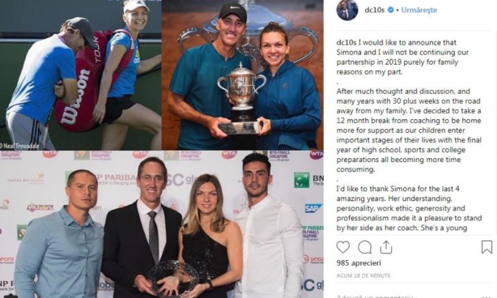„Aş vrea să anunţ că eu şi Simona nu vom mai continua împreună în 2019 din motive ce ţin de familia mea”, a anunţat Cahill, într-un mesaj pe Instagram, citat de WTA.