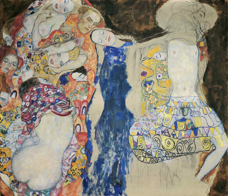 Fiecare operă a lui Klimt este o călătorie în care ornamentele bogate fac să dialogheze cu alegoriile şi simbolurile. Figura feminină plasată în prim plan, ca în Îmbrăţişarea, Sărutul, Fecunditate, Coafura, este fascinantă.
