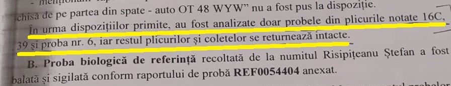 Procurorii au mai trimis spre expertiză alte zeci de probe și veți vedea ce importanță au cele de mai sus pe care le-am subliniat cu litere roșii:
