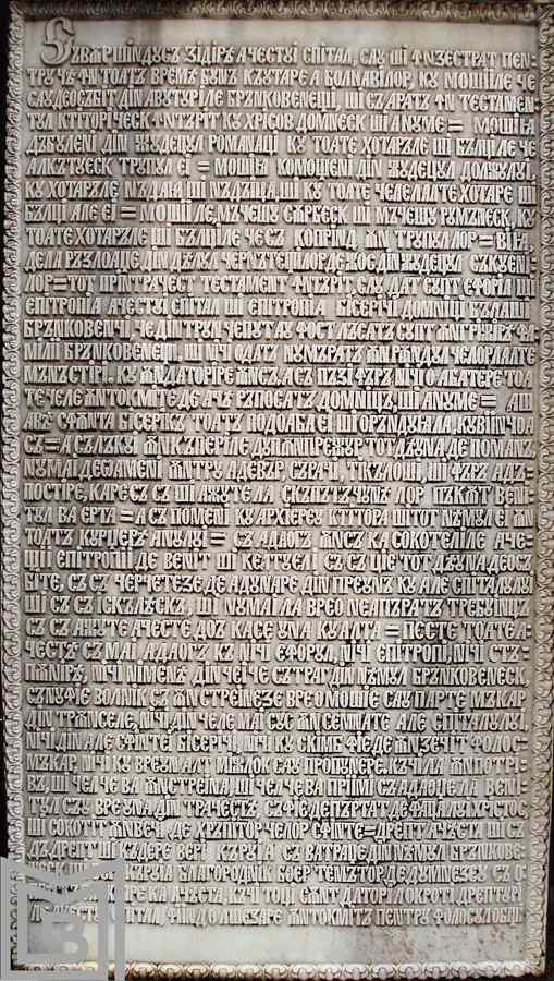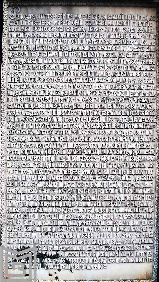 „Răposatul întru fericire marele ban al Valahii, prinţip al Au/strii şi cavaler al marelui ordin Stanislav al Polonii Grigorie / Basaraba Brăncoveanul cugetând pururea ca pentru a sa vecinică / pomenire, să facă vreun aşezământ spre mângăere celor în lipse / şi în nevoi şi împărăcherile vremi şi turburările ţări neertându-l, au / lăsat prin diată pă soţia sa, D. Elisaveta Brăncoveanca născută Balş / desăvărşită stăpână şi epitroapă pă tot avutul său supt îndato/rire a desăvărşi milostivnica sa cugetare.