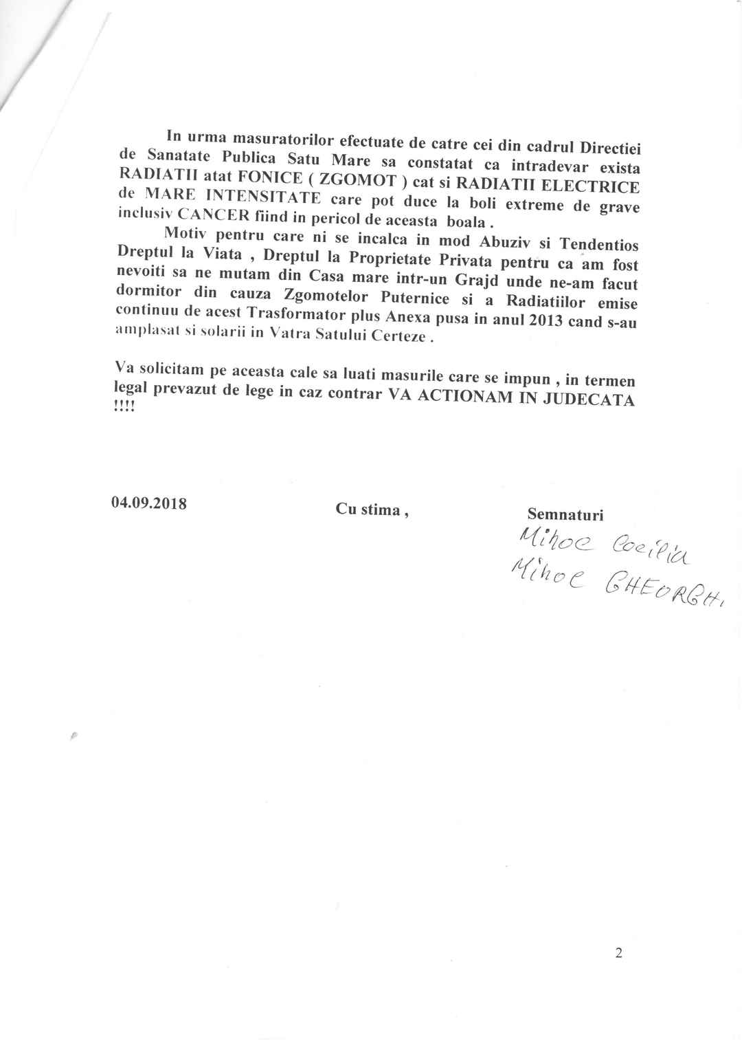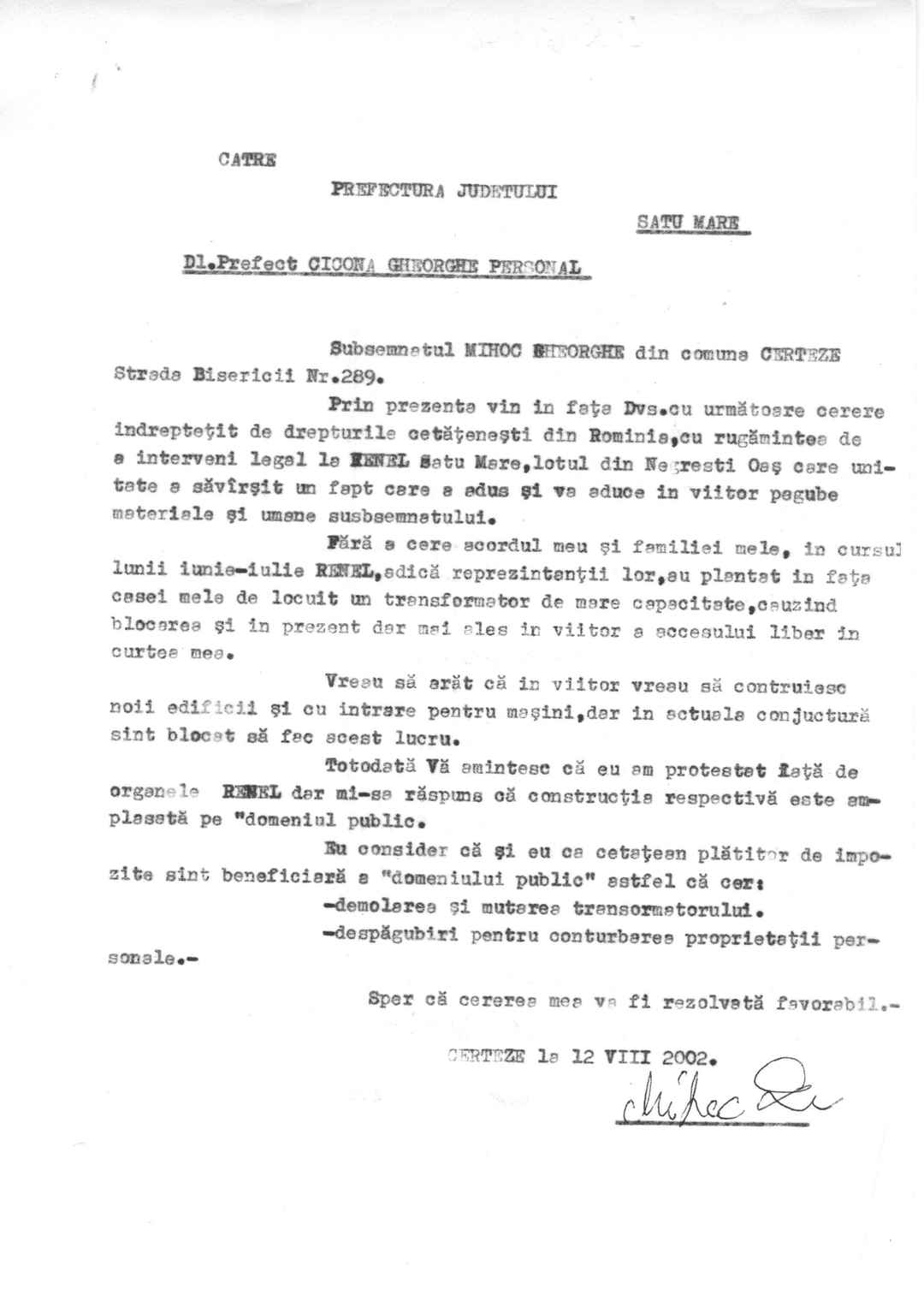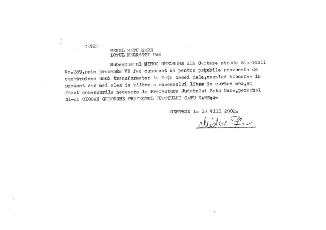 Din 2001, familia Mihoc a făcut nenumărate demersuri către autoritățile locale, către S.C. Electrica SA Negrești Oaș, Societatea de Distribuție a Energiei Electrice Transilvania Nord S.A. și către responsabilii autorităților de sănătate publică și de mediu județene și centrale (Direcția de Sănătate Publică Satu Mare, Garda Națională de Mediu, Prefectura Județului Satu Mare, Agenția pentru Protecția Mediului Satu Mare, Avocatul Poporului, etc), pentru a obține mutarea transformatorului.