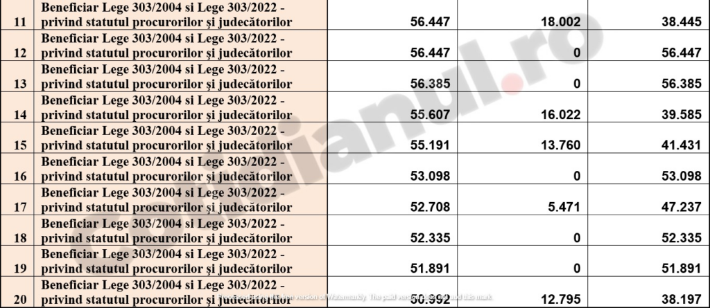 Citește și: EXCLUSIV Cea mai mare pensie din Justiție ajunge la 70.000 de lei. Partea specială e de 50.000 de lei. Cum arată top 10