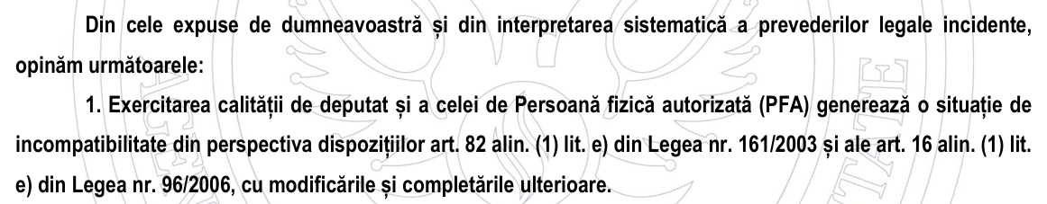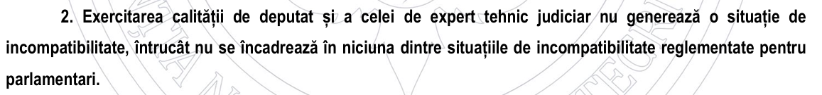 „Acolo e o chestiune complet separată. E vorba de expert tehnic-judiciar, nu de PFA, că sunt acuzații despre două lucruri. Unul, despre PFA, despre care v-am povestit. Al doilea este despre expertul tehnic-judiciar, care, conform legii, nu este o stare de incompatibilitate cu cea de parlamentar.