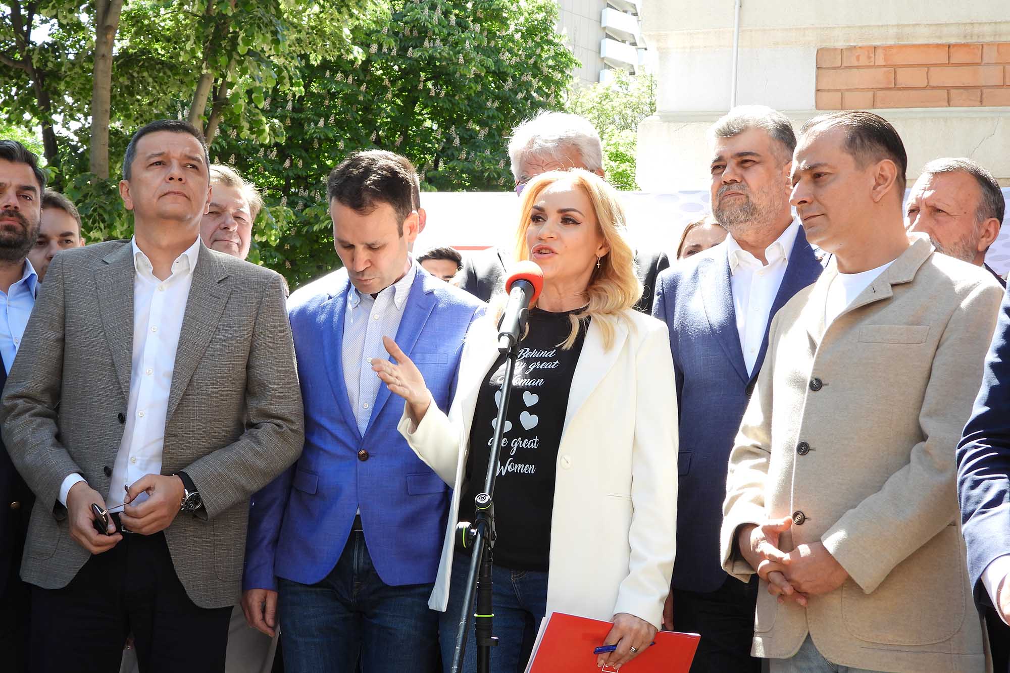 Gabriela Firea a venit la Biroul Electoral de Circumscripţie al Municipiului Bucureşti însoţită de preşedintele PSD, premierul Marcel Ciolacu, secretarul general al PSD, Paul Stănescu, prim-vicepreşedintele PSD Sorin Grindeanu, primarii Sectoarelor 3 şi 4, Robert Negoiţă şi Daniel Băluţă, europarlamentarul Mihai Tudose, alţi reprezentanţi ai PSD.
