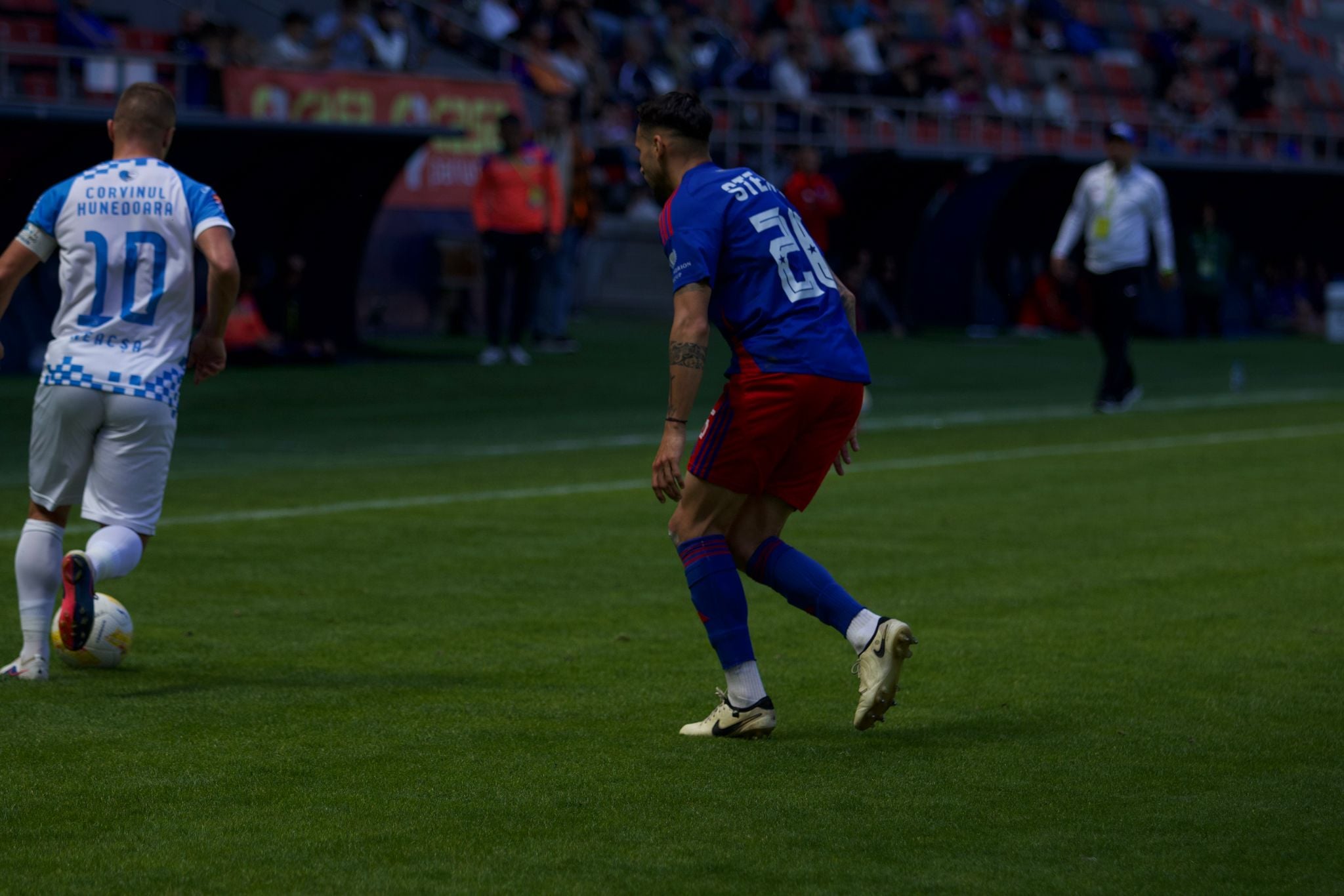 După pauză, o serie de mai mult de zece pase ale alb-albaștrilor a adus mingea în flancul stâng, la fundașul Ricardo Pădurariu. FCSB-istul împrumutat la Hunedoara a marcat cu un șut la colțul lung în minutul 56. 0-3.