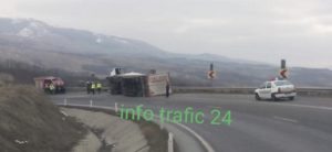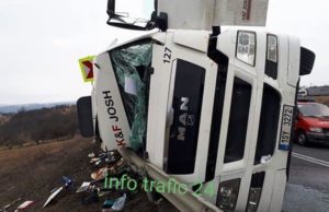 Tot sâmbătă, în jurul orei 10.30, un TIR încărcat cu baloți de materiale textile s-a răsturnat într-o curbă pe Drumul Național 6. Acesta circula din direcția Caransebeș spre Orșova, dar cel mai probabil din cauza vitezei, șoferul a pierdut controlul volanului și mastodontul s-a răsturnat.