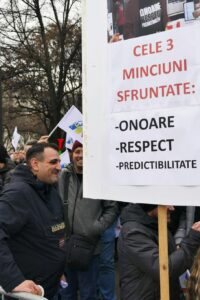 Conducătorii manifestației au făcut apel la unitate: ,,Trebuie să ne apărăm drepturile, trebuie să fim uniți! Unitate, unitate!″.