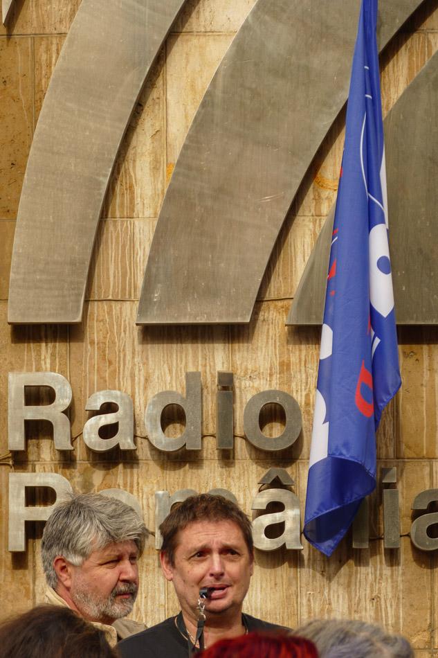 Angajați ai Radioului Public au protestat astăzi în fața sediului central al Societății Române de Radiodifuziune (SRR) pentru reglarea salariilor la același nivel cu al colegilor din Societatea Romănă de Televiziune, precum și pentru reducerea diferențelor mari de venituri dintre conducerea SRR și personalul executiv.