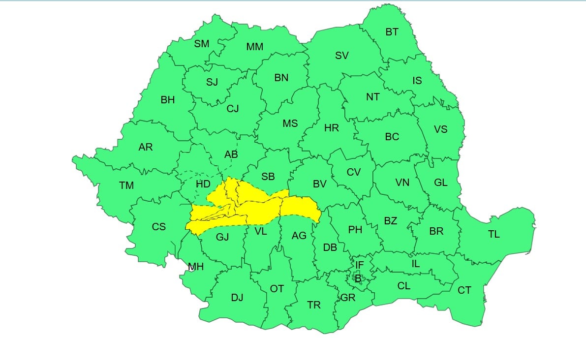 Pentru intervalul 22 noiembrie, ora 10 – 23 noiembrie, ora 10 a fost emisă o avertizare cod galben.