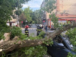 50 de intervenții în București; 44 de copaci doborâți de vânt, 15 autovehicule avariate