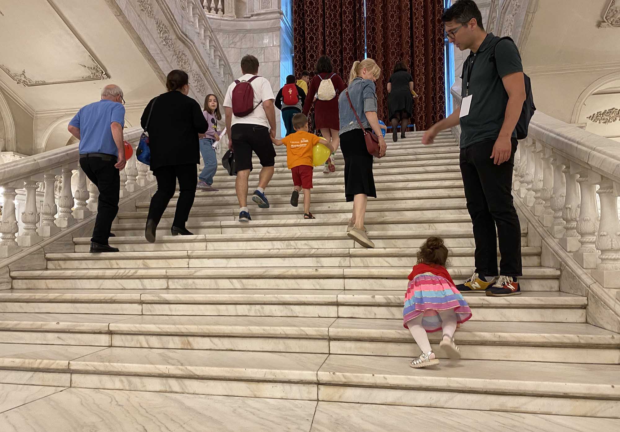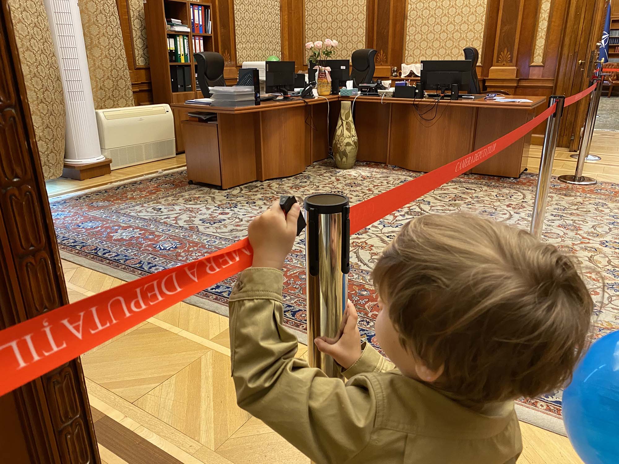 Parlamentul și-a deschis azi porţile cu ocazia Zilei Copilului. Sute de părinți și copii au luat cu asalt instituția, vizitând mai multe săli din Camera Deputaţilor şi din Senat.