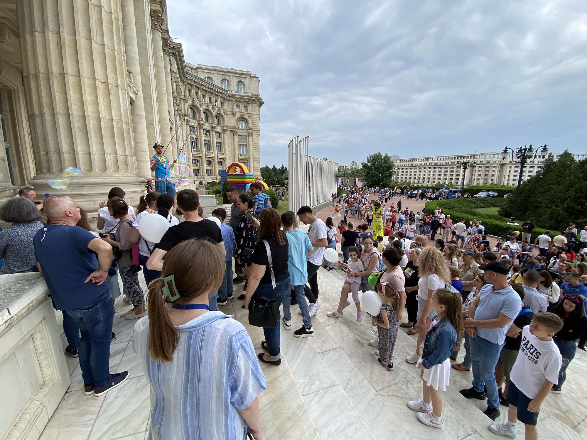 Parlamentul și-a deschis azi porţile cu ocazia Zilei Copilului. Sute de părinți și copii au luat cu asalt instituția, vizitând mai multe săli din Camera Deputaţilor şi din Senat.