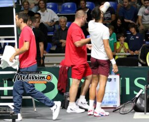 A venit la fileu, a discutat cu căpitanul nejucător Viktor Troicki cu colegul Hamad Medjedovic și s-a îndepărtat spre spatele terenului. Apoia trecut la treabă.