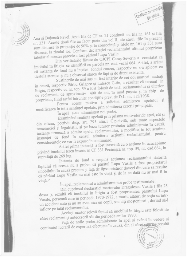 Judecătoria Caransebeş a respins acțiunea pentru faptul că nu există niciun element de identificare al proprietarului tabular și, eventul, date despre decesul acestuia, astfel încât să devină aplicabile dispozițiile art. 28 din Legea nr. 115/1938.