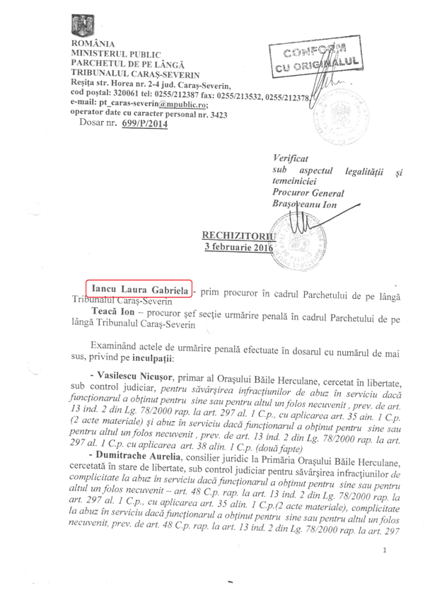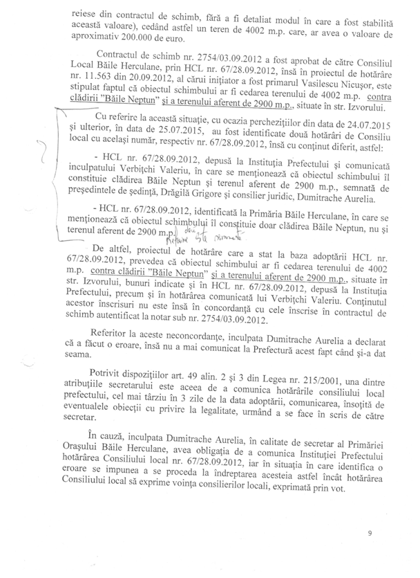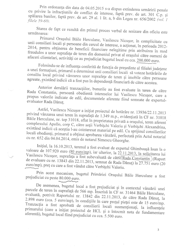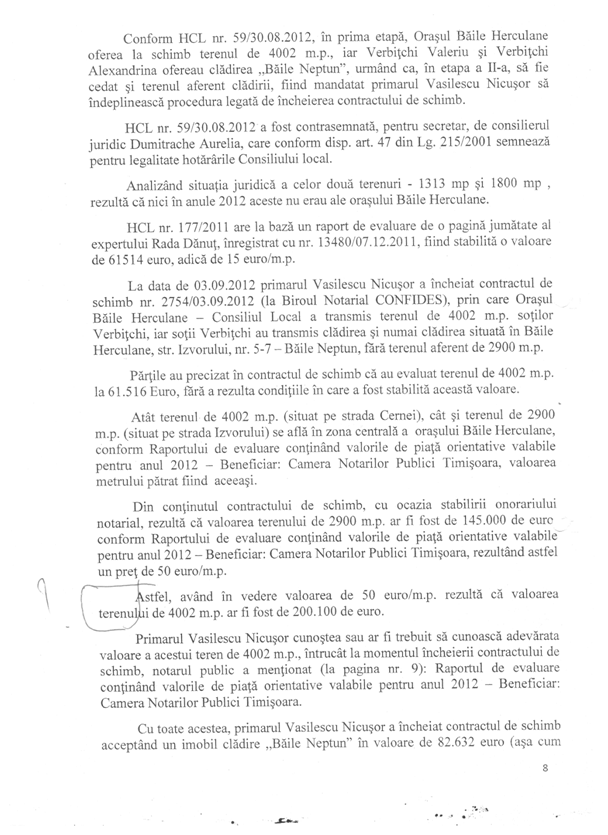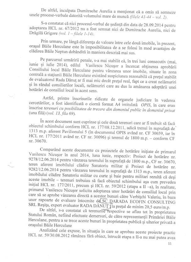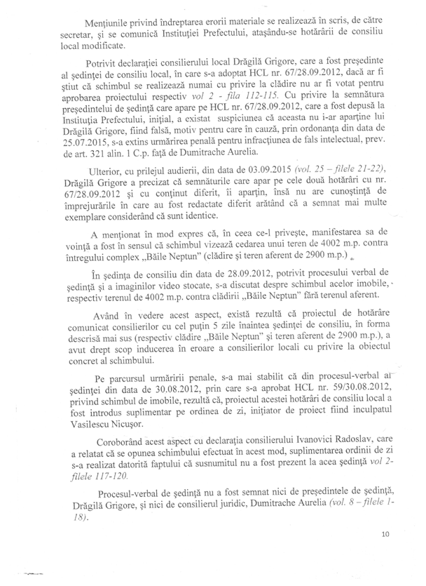 Dincolo de orice suspiciune, soluționarea acestui dosar atârnă de cercetarea unor indivizi care se fac vinovați de fapte de natură penală, în speţă fostul primar Vasilescu Nicușor și Dumitrache Aurelia și de savârșirea infracțiunilor de abuz în serviciu, dacă ceea ce se prezintă în acel material de urmărire penală este adevărat.