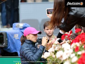 A pus-o în dificultate pe Iga, așa cum spuneam, cu ideea de a trimite mult pe backhandul acesteia, ca în momentul prielnic să schimbe pe forehand.