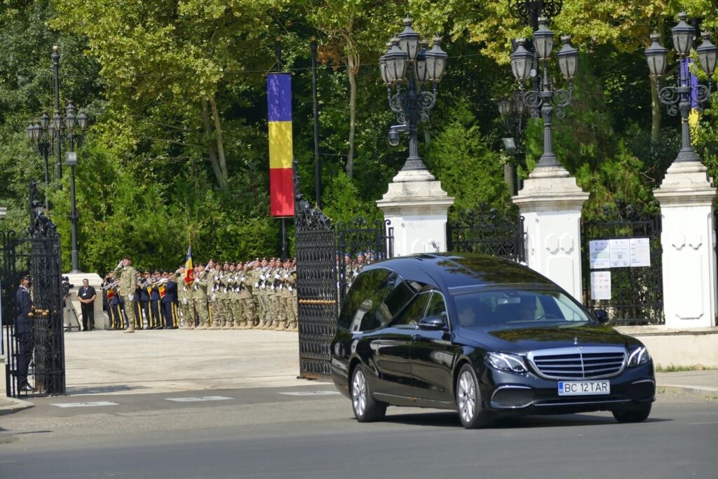 Pe acordurile Imnului de stat, militarii au executat 21 de salve de tun în onoarea fostului şef de stat.