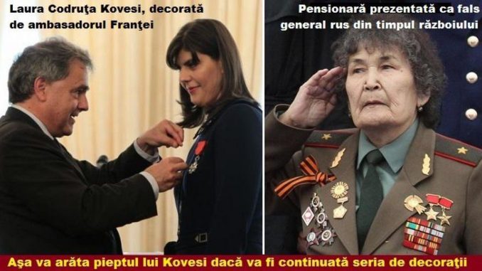 P.S. De Ziua Naţională, la fel ca pensionara lui Putin, prezentată ca falsă eroină a Războiului, Laura Codruţa Kövesi ar trebui să apară pe piept cu toate decoraţiile primite! S-o vedem şi noi şi să ne mîndrim, ca să nu mai fim „oameni ameninţători, nu?”